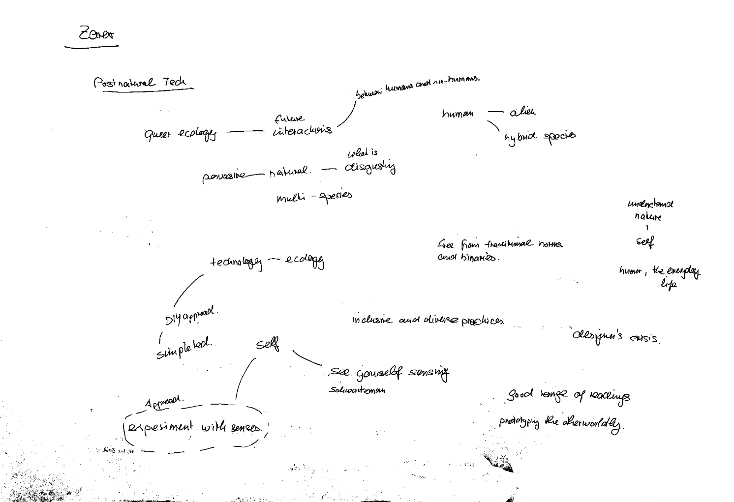 The findings piqued the class's interest, and a classmate gave me suggestions on what I could read and some project examples. It was also interesting to see how people reacted with keywords such as: Alien, Hybrid Species, Everyday, Humour, Experiment with Senses